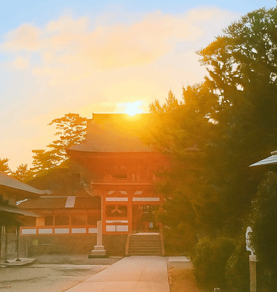 撮影を終えて、帰る夕方に捉えた映像。 まさに、日本の夜を守る日沉宮(祭神:天照大御神)を象徴してるなーって感動した瞬間でした✨(きっと夕日の位置まで計算して、建てられたんだろうなって思いました)