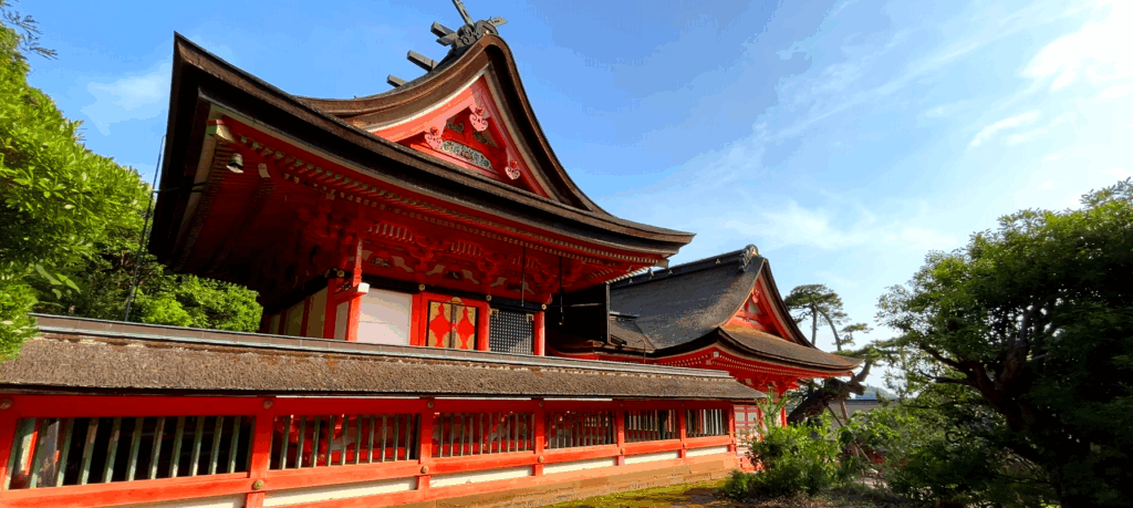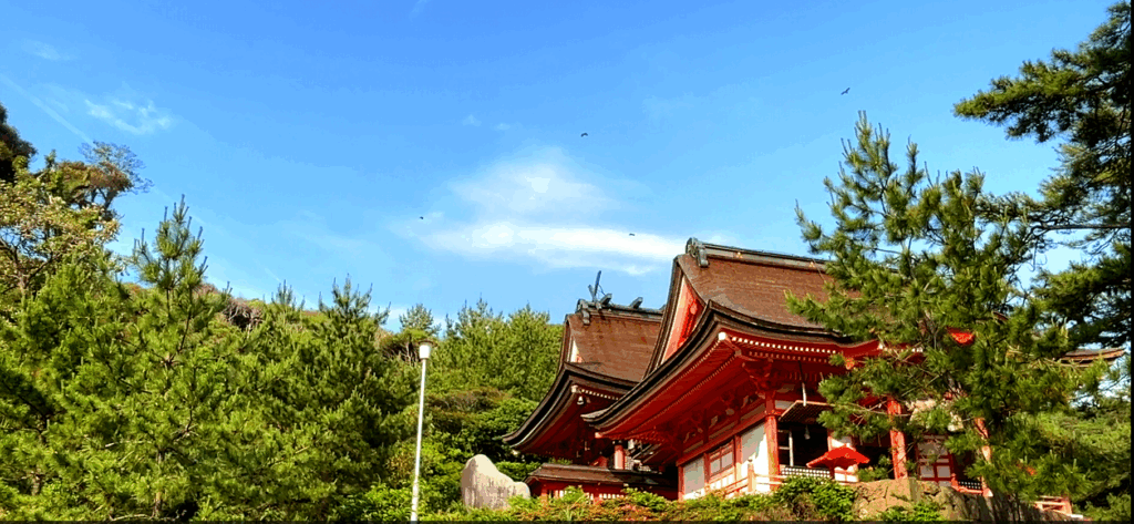 多くの神社が日が昇る向きに建てられる中、神の宮はアマテラス(日沉宮)にまるで、寄り添うような向きで建っています。かつては、スサノオとの対立により「天の岩戸」に隠れたアマテラスの神話がありますね。でも、今は永遠の調和を語っているように見えました😌