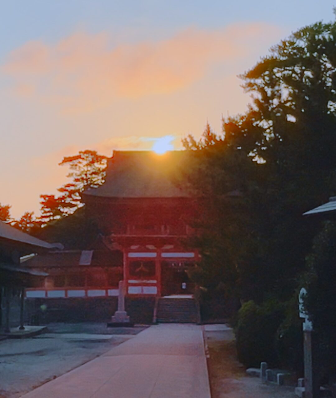 撮影を終えて、帰る夕方に捉えた映像。 まさに、日本の夜を守る日沉宮(祭神:天照大御神)を象徴してるなーって感動した瞬間でした✨(きっと夕日の位置まで計算して、建てられたんだろうなって思いました)